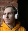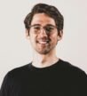 The image depicts a modern indoor setting with posters on a wall featuring a professional headshot and text related to marketing. Silhouetted figures are seated at tables in the foreground, casting shadows. The lighting is dim, creating contrast between the illuminated posters and darker seating area.